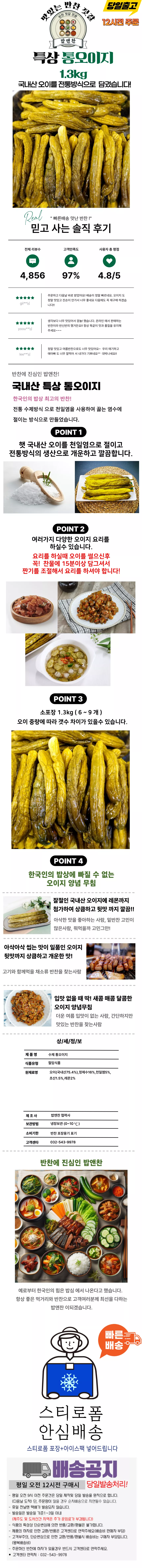 [밥앤찬] 2025년 국내산 햇오이지 1.3kg 특상 수제전통방식 오이지