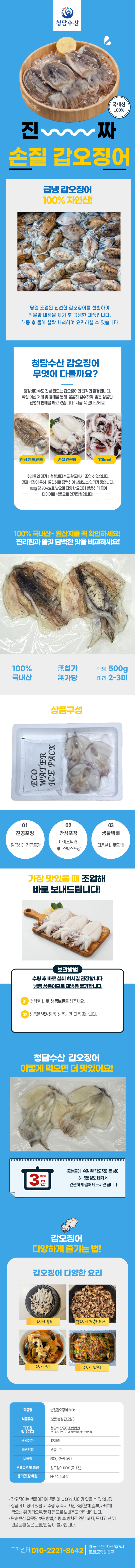 [완도 산지직송] 냉동진공 손질 갑오징어 500g (2~3미)